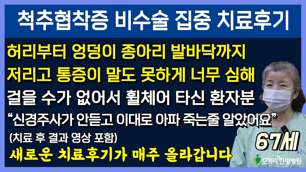 허리디스크, 협착증을 인터넷 검색하고 유튜브를 찾아봤어요. 모커리한방병원이 나와 갖고 봤죠. 보니까 비수술로 치료해서 회복된 사람들이 나하고 비슷한 증상이 많았어요. 치료후기 보고 어떻게 치료하신다 원장님들이 설명한 거 봤어요. 모커리한방병원 한번 가봐야 되겠다 그 생각했죠. 비수술이고 입원집중치료 한다고 그래 갖고 다른 병원은 제쳐두고 그래서 전화예약을 하고 6월 25일 날 와서 입원을 한 거예요. 저는 아프니까 입원하면 어떻게 통증은 없애주겠지 그 희망을 갖고 왔어요.