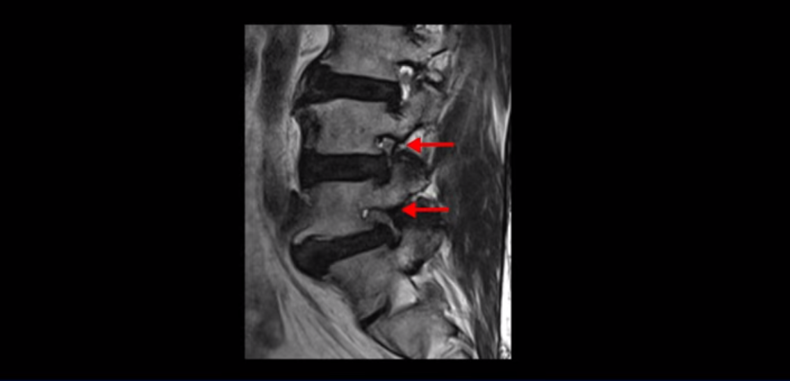 이 환자분은 협착증 수술을 두 번 받은 뒤에 또 다시 다리 방사통이 심해지고 발목 마비 증상(풋드랍)이 생겨서 이번에는 유합술을 권유받은 환자분입니다. 먼저 MRI를 보고 설명해 드린 후 이런 환자분의 방사통과 발목의 마비와 힘 빠짐이 어떻게 수술 없이도 좋아질 수 있는지 그리고 치료는 어떻게 하는지 자세히 설명드리겠습니다.